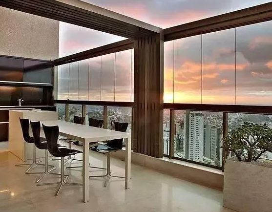無框陽臺窗美觀上可以說和開放式不相伯仲了,不僅擁有封閉陽臺的優(yōu)勢,還能做到完全敞開窗口,視野寬闊,比起有框陽臺窗更為通透明亮。