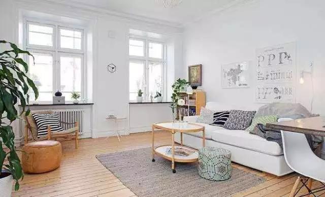 北歐家居主要以黑白灰純色為主,配以高明亮的色彩點(diǎn)綴,手工編織飾品、大葉綠植等的加入,整個(gè)家居空間靈動(dòng)自然。