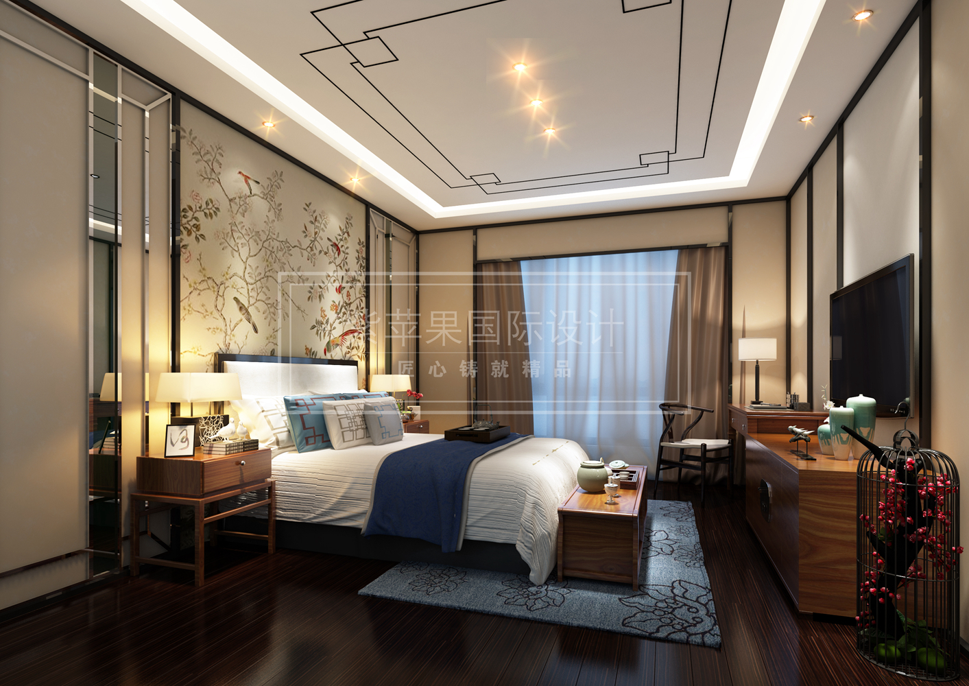 臥室的地面一般以木地板為宜。墻面可用乳膠漆,墻紙或部分軟包裝飾,視需要可對床頭的墻面加以簡單的造型設(shè)計(jì),可兼有一定的使用功能。室內(nèi)平頂宜簡潔或設(shè)少量線腳。