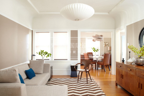 色彩會直接影響到人的視覺效果,暖色調(diào)為擴(kuò)張色(熱脹),冷色調(diào)為收縮色(冷縮)。而深色的地板比較有伸縮視覺效果的,常用于大空間房屋,選擇深色地板時家具最好不要選擇同色系,這樣會給人的感覺是一體的,沒有層次感。所以選擇家具為白色或者原木色家具最為合適,對比效果也會很強(qiáng),這樣搭配起來空間會更有條理性。
