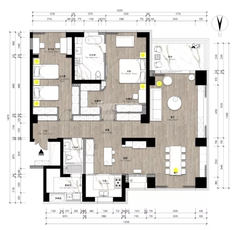 本案業(yè)主對(duì)生活品質(zhì)有著極高的要求,帶著對(duì)美好的新生活的期盼。摒除嘈雜的塵務(wù),由衷盼望家就是最舒服的港灣。朝南的美景與溫煦留給客廳、主臥室與小孩房,感受四時(shí)流轉(zhuǎn)間的風(fēng)光綺麗,無(wú)形引進(jìn)自然能量調(diào)劑身心,天人相應(yīng)間無(wú)為而生;朝北的空靈留給開(kāi)放式廚房、餐廳,視野大闊之余胸懷隨之開(kāi)敞,靜候心靈的歸零與重啟。