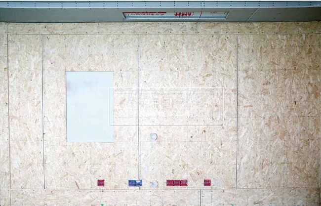 墻面木質(zhì)造型基層,粉刷石膏大餅沖筋找平,15mm歐松板開槽防潮,留縫、美固釘固定,據(jù)地8-15mm。
