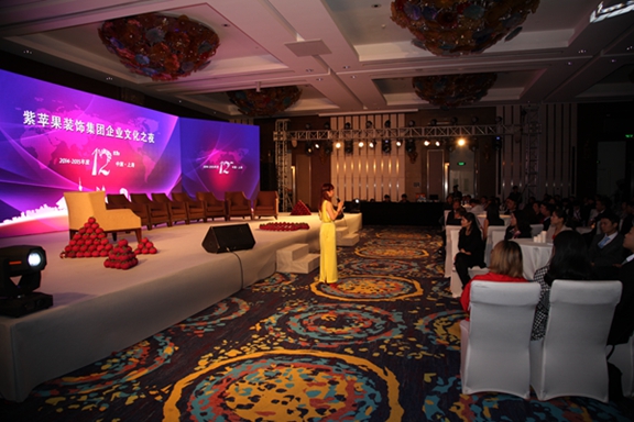 2015年4月16日,紫蘋果集團(tuán)全國(guó)各地的優(yōu)秀紫人帶著激動(dòng)與喜悅的心情奔赴上海,齊聚上海穎奕皇冠假日酒店,參加集團(tuán)12周年年會(huì)。在五星級(jí)酒店的舒適體驗(yàn)與怡人風(fēng)光中,所有人共同迎接來了紫蘋果裝飾集團(tuán)12周年慶的隆重首發(fā)活動(dòng)——企業(yè)文化之夜。