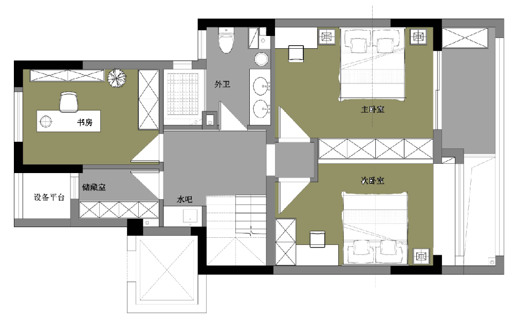 二樓外拓現(xiàn)澆之后是三個(gè)規(guī)整的大房間,朝南兩個(gè)臥室,采光都很好,南面的一個(gè)房間可以用作書房使用也可以作為多功能區(qū),設(shè)備平臺(tái)外面是一個(gè)儲(chǔ)藏室,保證了充足的收納。天奕銘著無錫裝修別墅裝修