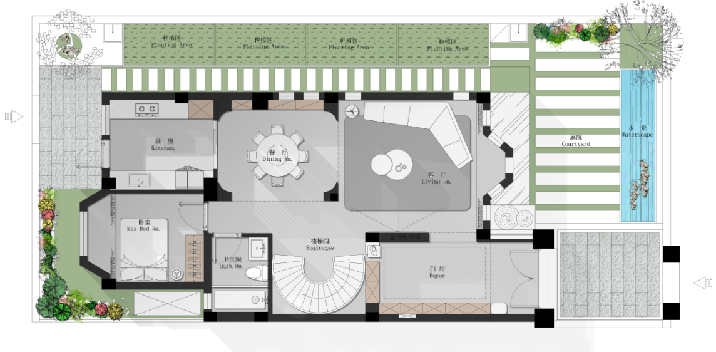 呈現(xiàn)出空間的通透感,讓人身心放松,感受生活的美好與恬靜。地下室的半澆挑空設(shè)計(jì)更是增加與家人之間的親密互動(dòng)。
