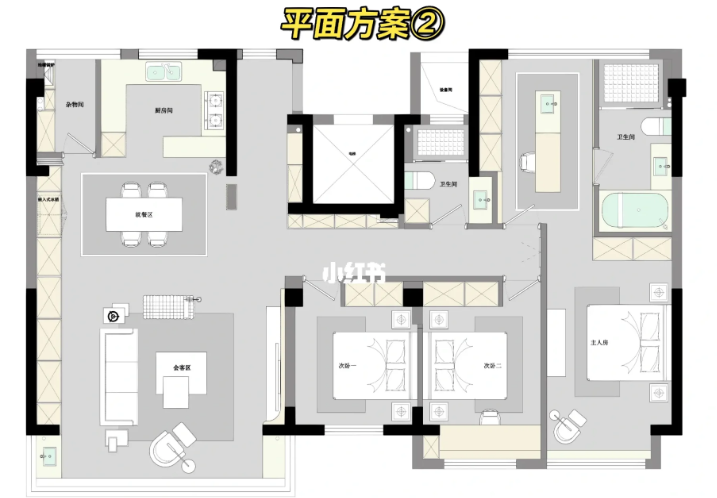 首先做了一個敞開式的大廚房,此方案兩個臥室,起