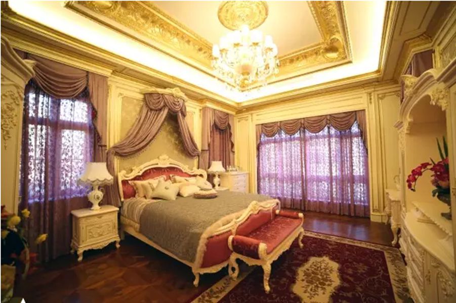 圓頂帳幔和厚重絲絨的搭配,絕對(duì)是營(yíng)造奢華皇室風(fēng)格的最佳拍檔,但把溫柔別致的薔薇粉色運(yùn)用在這里恐怕并不多見(jiàn),呈現(xiàn)的效果卻是出人意料地精彩:讓奢華少了一點(diǎn)浮夸,又增加了些許寧?kù)o質(zhì)感。絲絨帳幔的內(nèi)層很細(xì)心地采用了更加淺淡的適合睡眠的豆沙粉色,讓被封閉住的空間只留下寧?kù)o舒適。寢具的選擇延續(xù)并弱化了帳幔的粉色,漸次淺淡的粉色鋪滿一床,溫柔得讓人想立即沉睡其間。