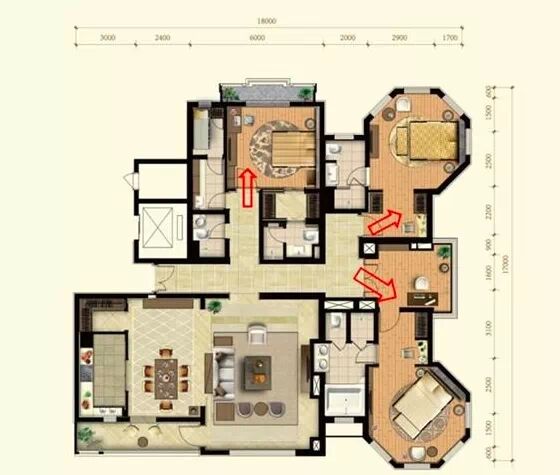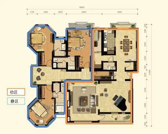但大戶型不能一味大,不然,就會(huì)造成空曠感,反而降低了居住的舒適度。200平米以上的戶型基本劃入別墅范疇,它有幾個(gè)主要的分區(qū)尺度: