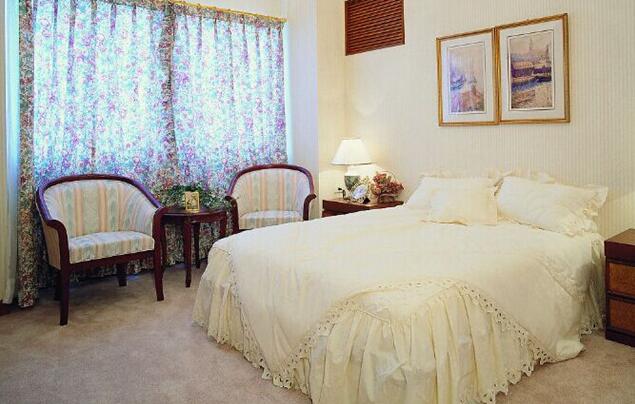 雖然看起來很少的幾件家具,但是帶來了很大的家具擴大空間感,而且簡潔的配色方案更是透露出了小清新的感覺。此外,這個房間的亮點還有小飄窗,無論是擴展視野還是用戶外風光點綴都達到絕佳的效果。