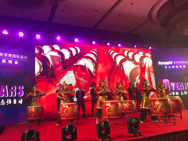 進(jìn)入到主會(huì)場,這里播放著無錫紫蘋果國際設(shè)計(jì)的家人們的工作的視頻和照片,這一年來大家為自己,為事業(yè),為業(yè)主拼搏了很多,也奉獻(xiàn)了很多,紫石3.0工藝,紫石4.0工藝的展示,臺(tái)下坐著合作商朋友們,業(yè)主朋友們,還有紫人的家屬們。