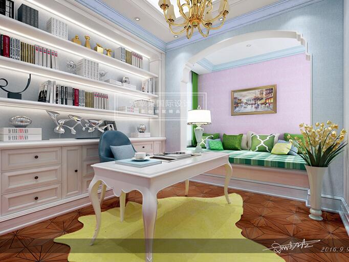 再轉(zhuǎn)角一瞥便是,書香濃濃的書房。書房是智慧和安靜的圣域,白色,海藍(lán)色,深色地板的搭配,讓人很快的安靜下來去融入書海中,猶如身臨其境,體驗(yàn)在書海中暢游的樂趣,累了可以有個軟包沙發(fā)小息片刻。逛完一遍整體空間,像是漫步在高貴的皇宮,像是散步在大海邊的沙灘,像是翱翔在藍(lán)色天空,像是步入那靜謐的后花園。