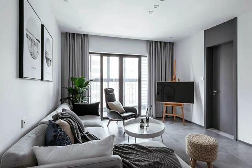 窗簾的粉紅既不花哨又不會單調(diào)無趣,且與灰色沙發(fā)、木紋茶幾融成一個十分和諧的視覺整體。