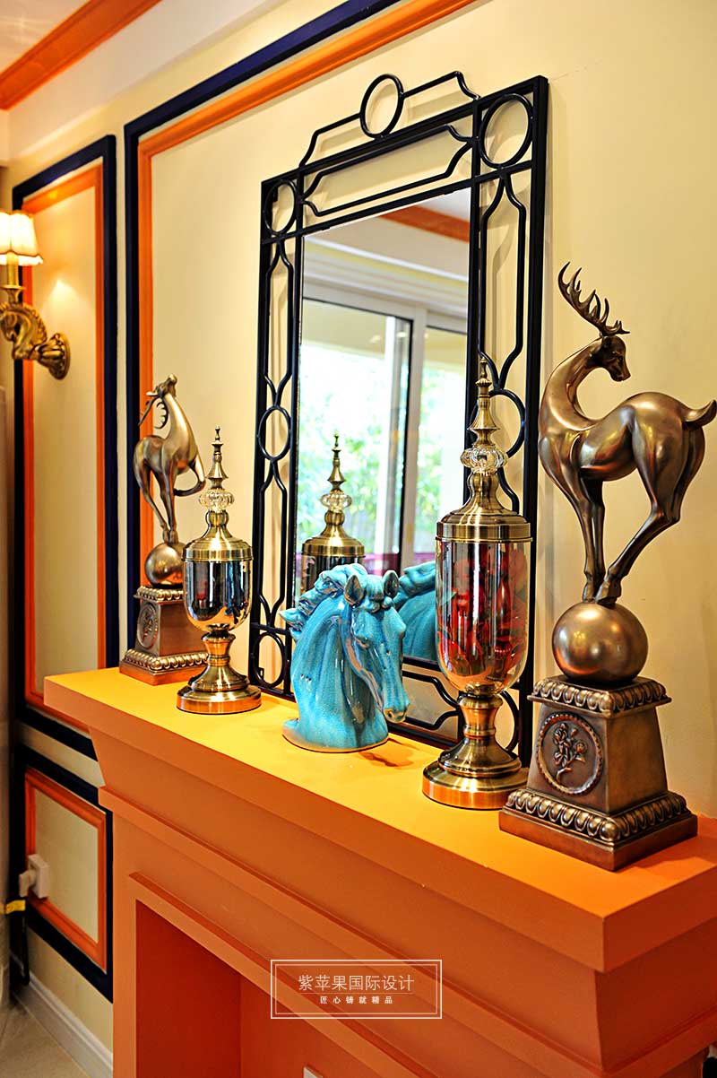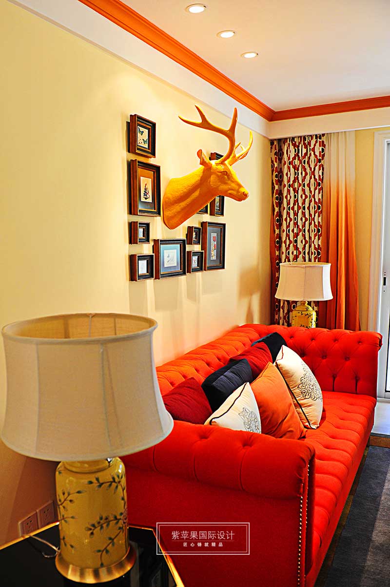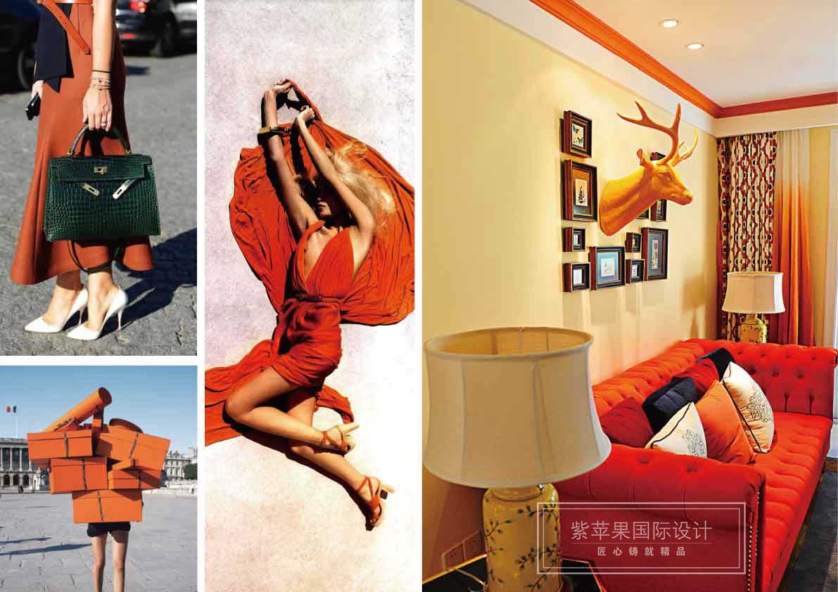 顏色上,設(shè)計(jì)師選擇了擁有蠱惑人心的魅力橙色,它是性感男女的獨(dú)屬代名詞,熱烈而又富有親和力,充滿時(shí)尚朝氣,滲透進(jìn)每一寸肌膚里,給人帶來的自信感受。結(jié)合浪漫的法式花紋和異域別樣風(fēng)情,應(yīng)用于窗簾、靠枕、沙發(fā)等設(shè)計(jì)元素中,強(qiáng)烈的視覺沖擊力直擊心靈。