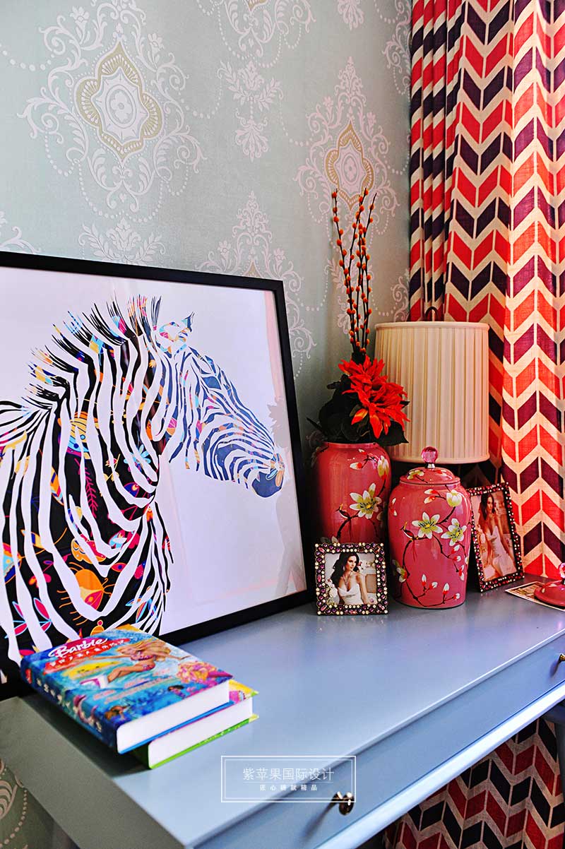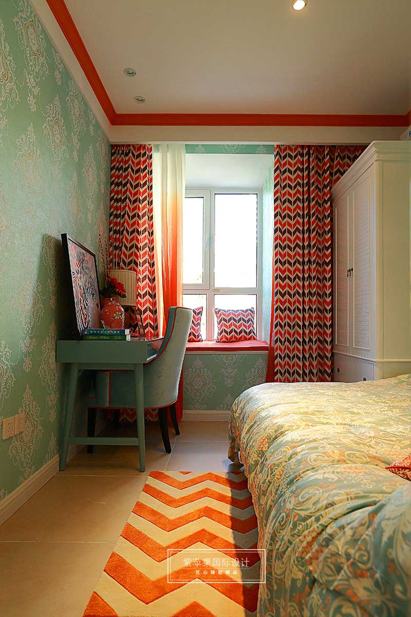 藍(lán)色、橙色為主色調(diào),打造溫暖、陽光、清新的臥室。橙色在斑馬紋、桌椅、地毯的使用上,就算是只作為裝飾點(diǎn)綴也能獲得非常棒的視覺效果。