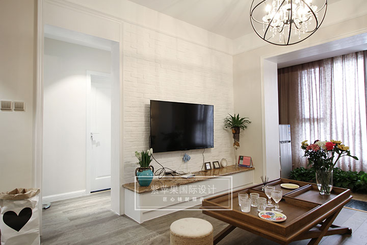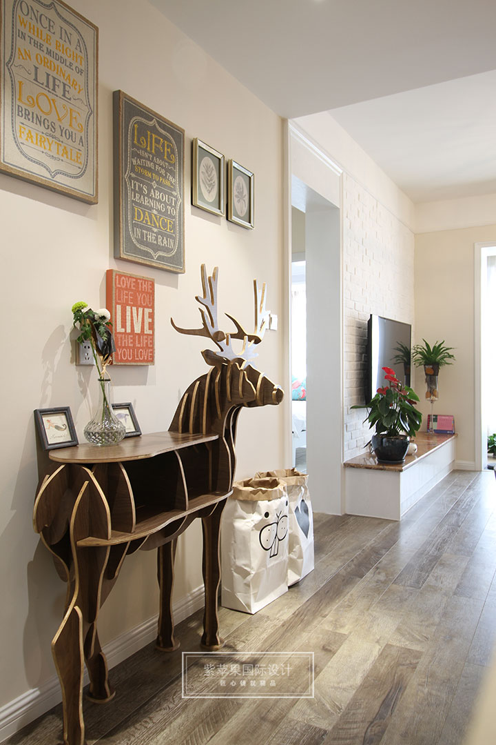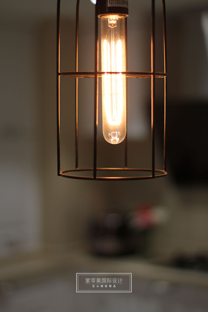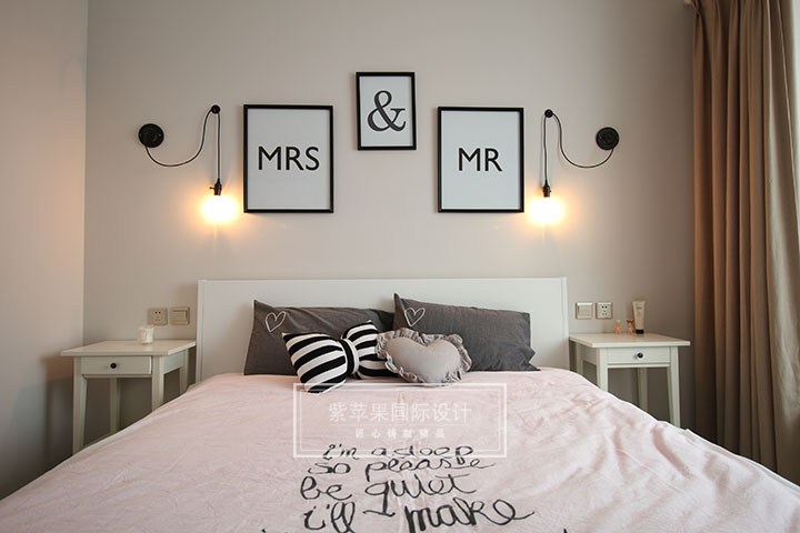 柔和,溫馨,簡(jiǎn)約,是空間的整體格調(diào)。墻面上別致的燈飾為空間增加了個(gè)性俏皮的元素。