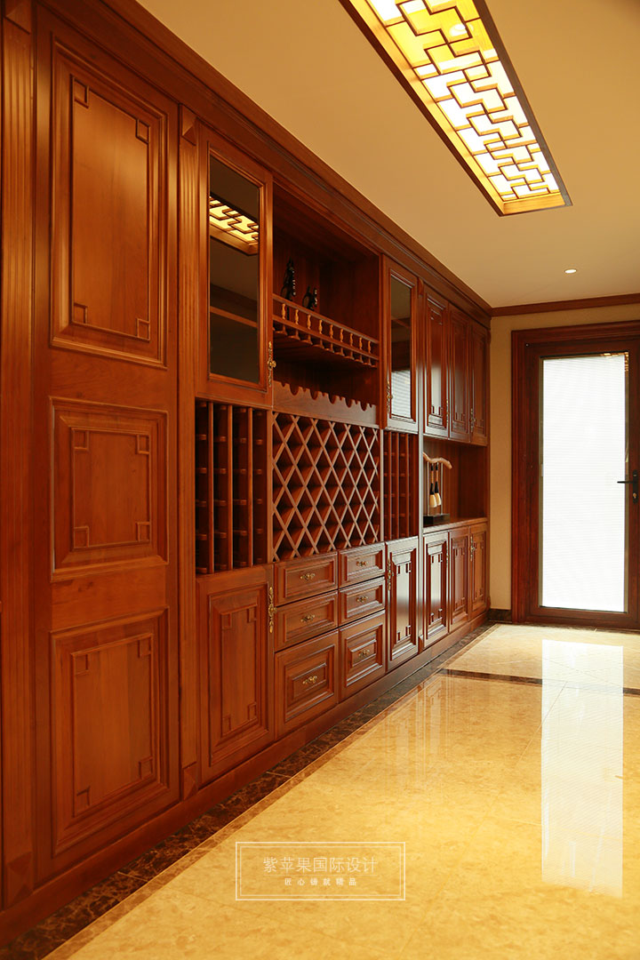 直線裝飾在空間中的使用,反映出業(yè)主追求簡單的居住要求,使中式風格更加實用、更富現(xiàn)代感。四面落地窗的設(shè)計使室內(nèi)光線充足,視野開闊,燈光的設(shè)計柔和不刺眼,讓主人及來賓在優(yōu)雅,舒適的氛圍里,盡情來一場臺球?qū)Q賽!