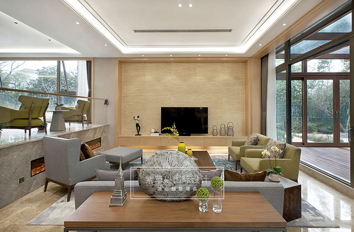科技木的運用和隱藏窗簾的設(shè)計,配合大面積落地玻璃門窗,形成一幅清新自然的綠色景觀畫。這是將美好自然景觀與日常生活巧妙結(jié)合,借景入畫,增強(qiáng)家居美感。