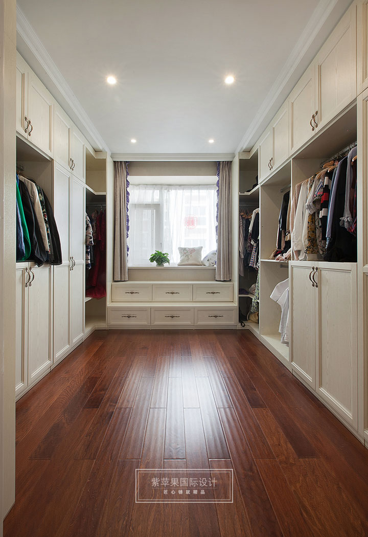 衣帽間的設(shè)計(jì)留出了足夠的空間。白色的衣柜干凈大方,提供了一個(gè)舒適的換衣環(huán)境。