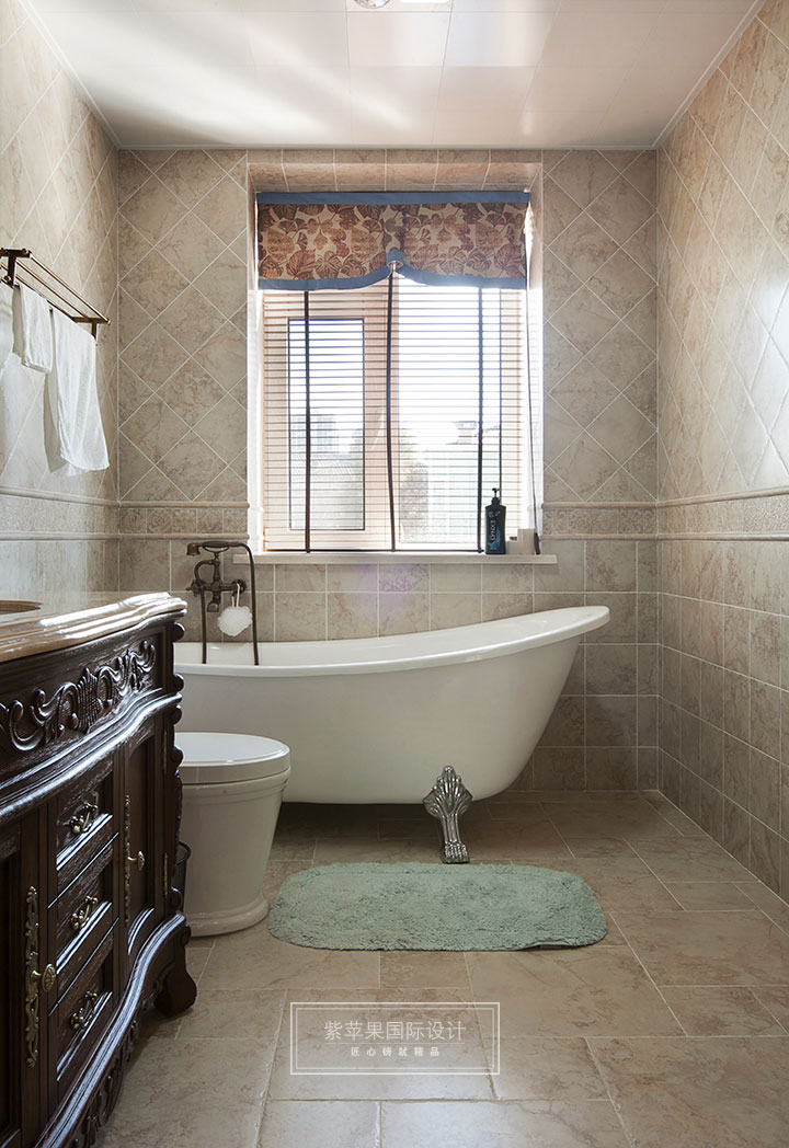 設(shè)計(jì)簡(jiǎn)約的浴缸使用及清潔方便,整個(gè)浴室沒有過多的裝飾,簡(jiǎn)約大氣,自在優(yōu)雅。