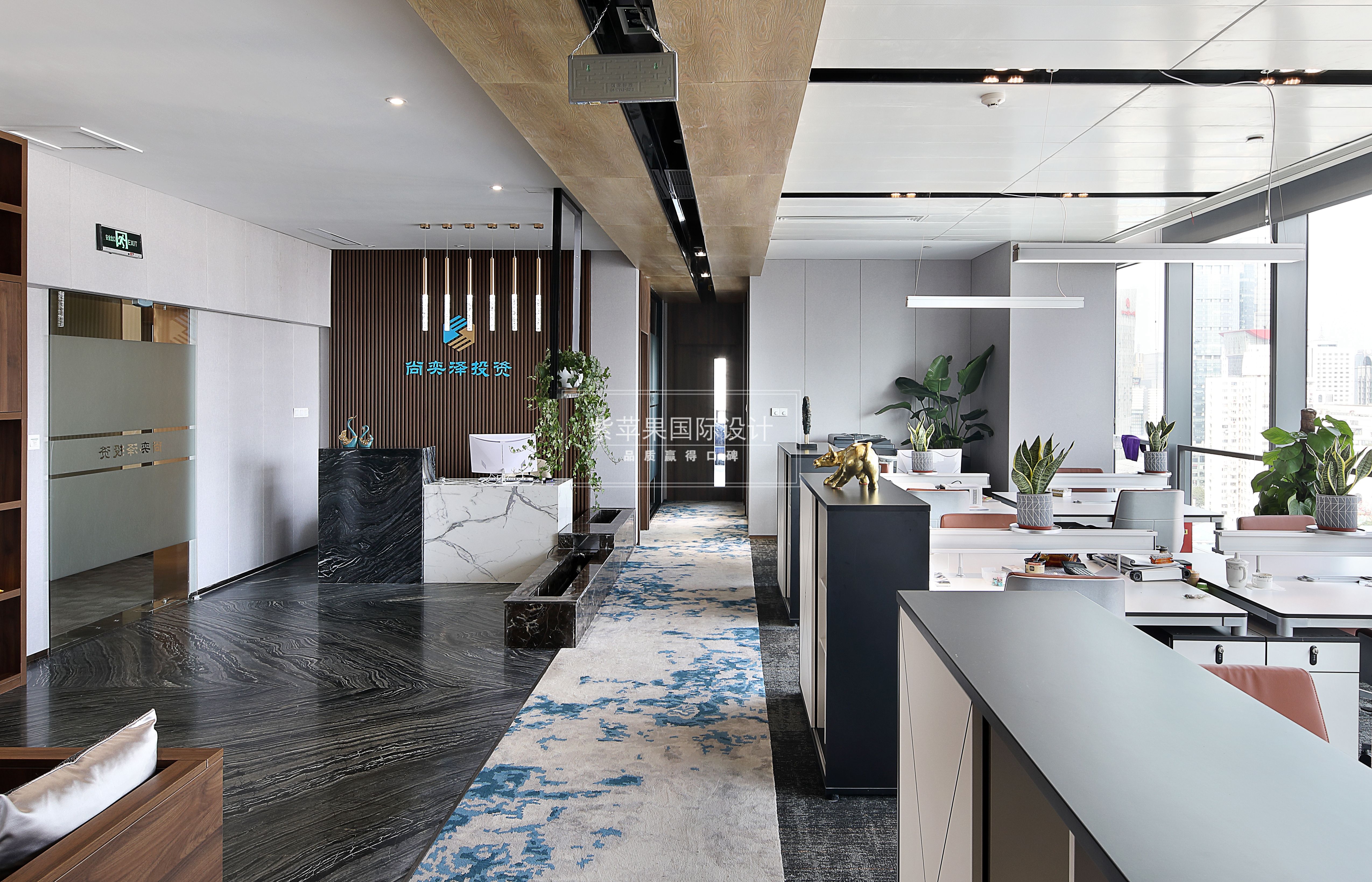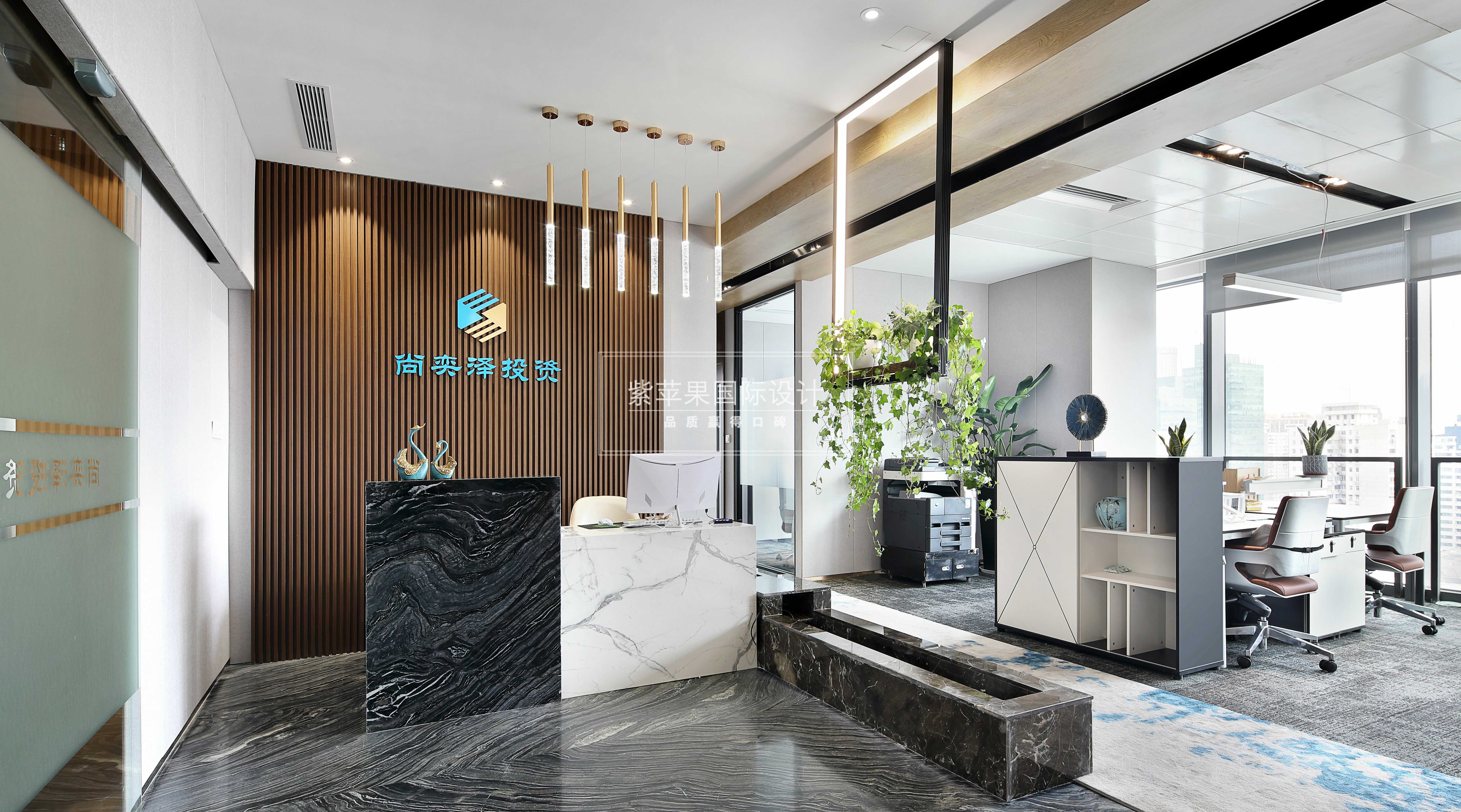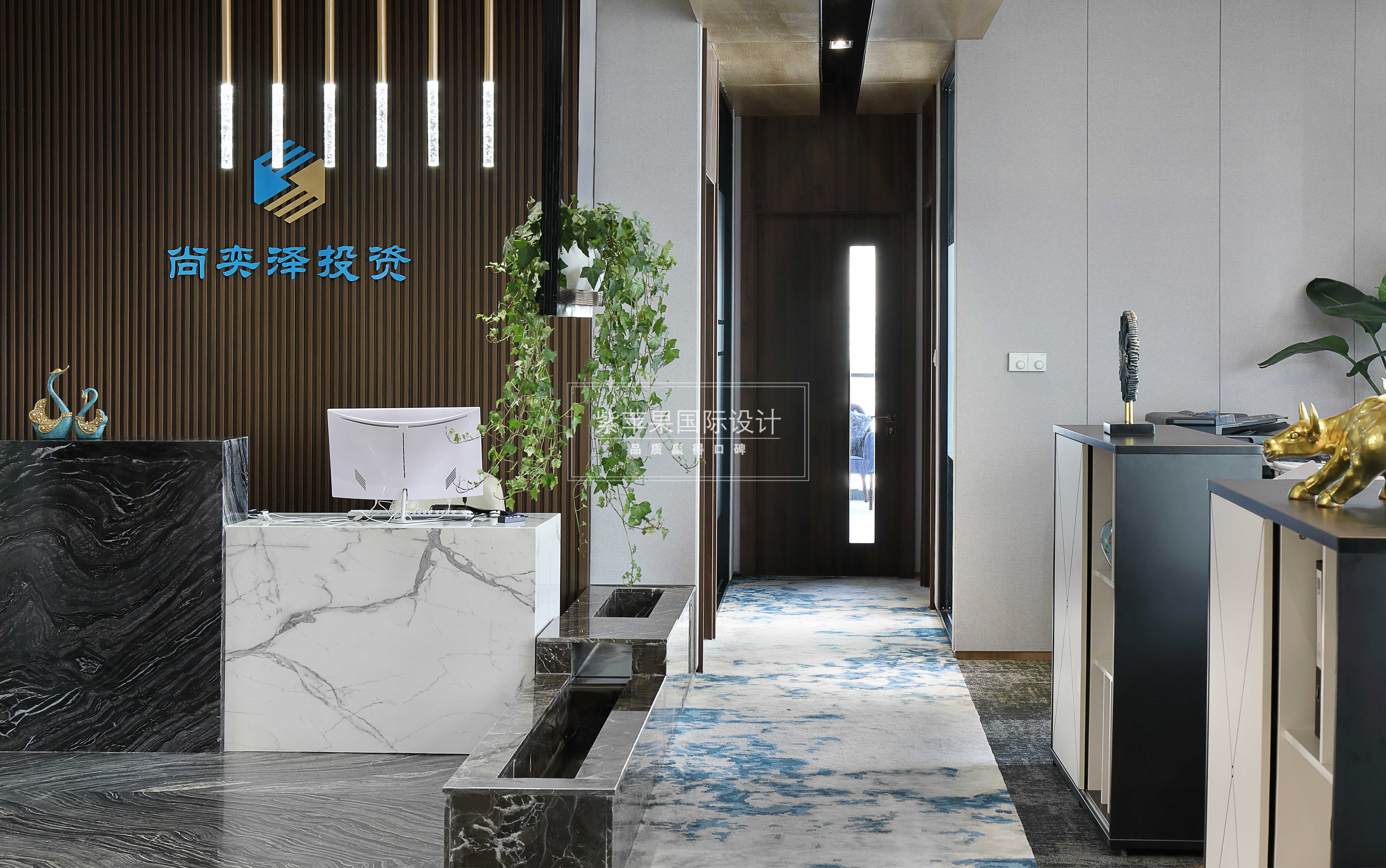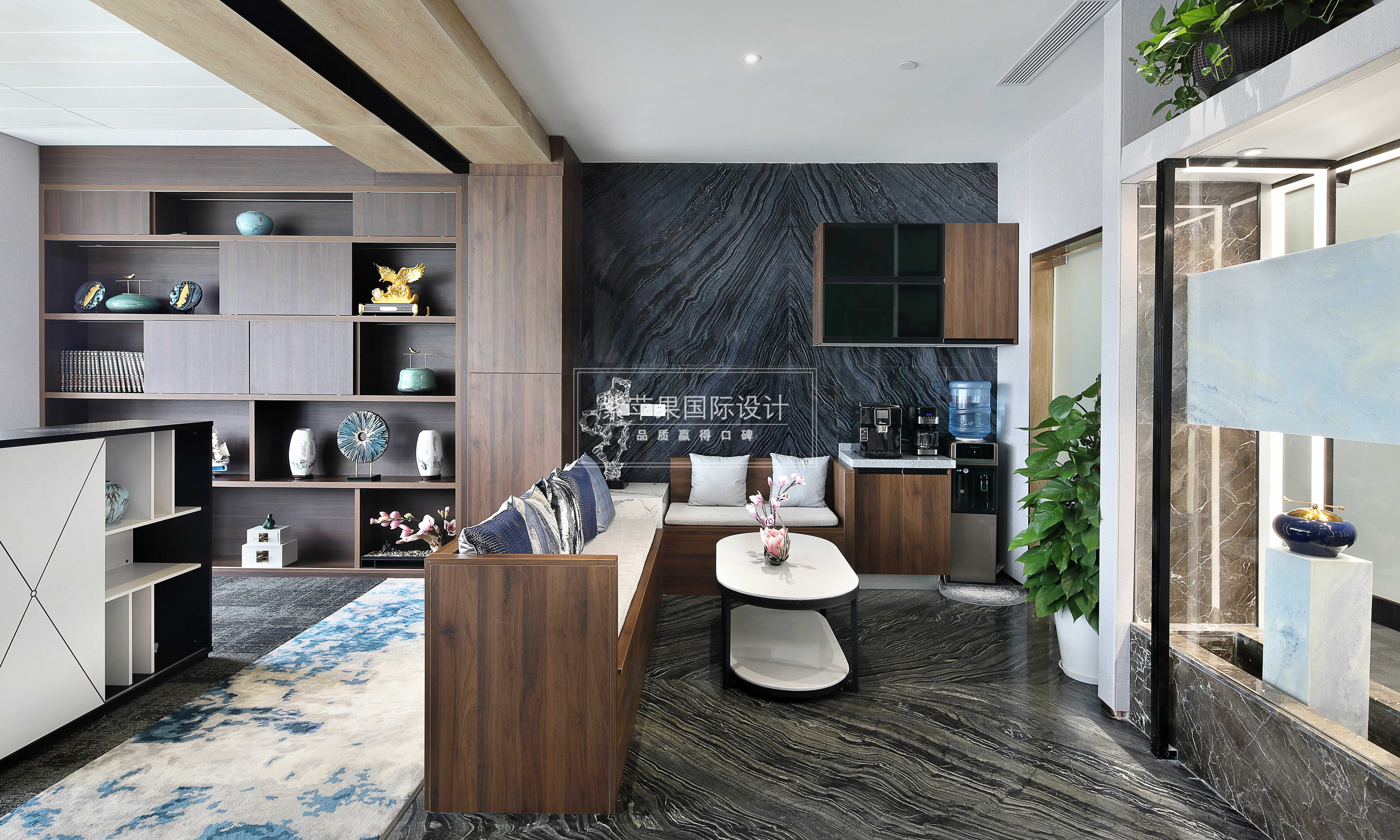 設(shè)計理念:業(yè)主是金融人士,個人對裝修品質(zhì)有一定要求,注重風(fēng)水及命理,喜木喜水,對員工也很體貼。所以整體設(shè)計在滿足辦公正常需要的同時,通過各種材質(zhì)和細(xì)節(jié)巧妙融入風(fēng)水觀念,一個現(xiàn)代風(fēng)格的辦公環(huán)境呈現(xiàn)而來。