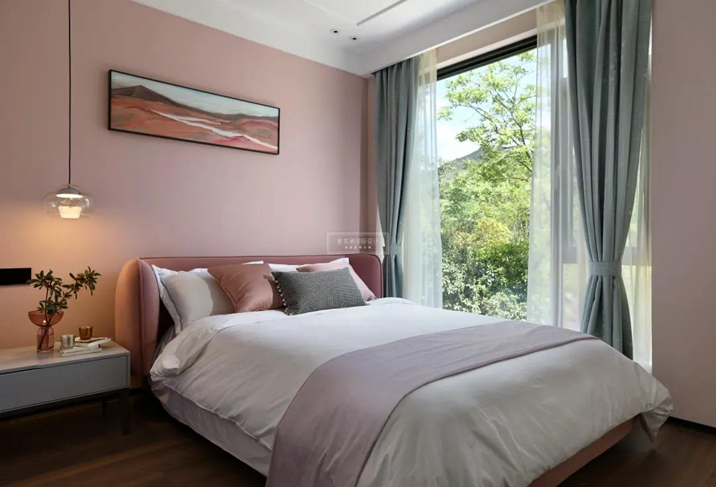皮粉色的高級(jí)感給空間賦予精致的氣質(zhì),窗外自然景趣借景入戶,視享美感更能滿足心中升起的愉悅滿足。